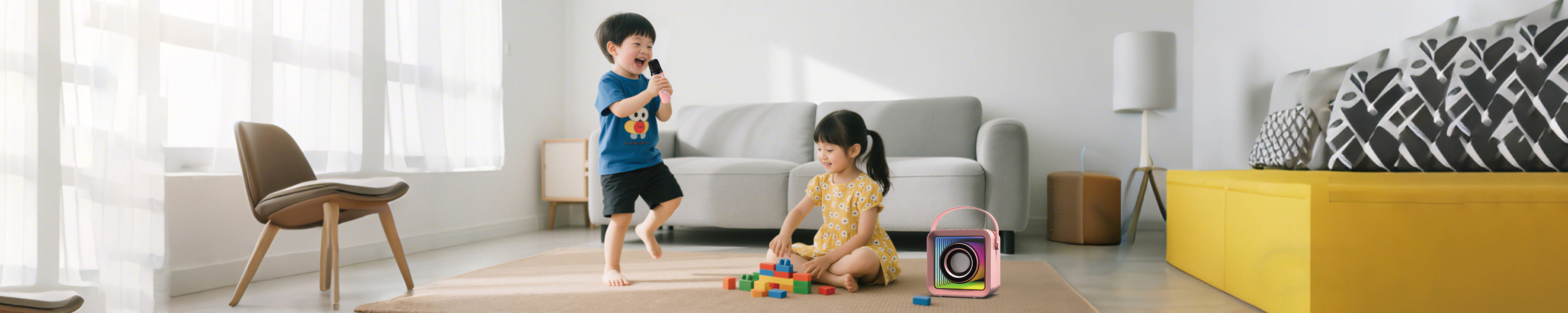 HUABAO Mini Karaoke Machine with 2 Wireless Mics - Portable Bluetooth Singing Speaker with Lights, Kids Karaoke Toy Gift for Boys & Girls Birthday Parties & Home Entertainment